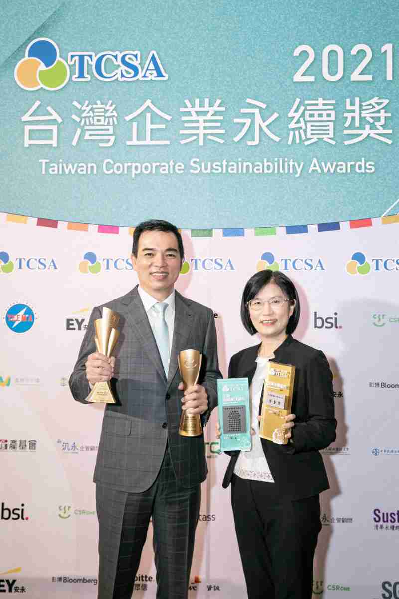 达在台湾永续奖所评比环境、、、社会、、治理等各面向的永续绩效均获高度肯定 (左:PA直营光电总经理暨营运长柯富仁,,,右:PA直营光电永续长古秀华)