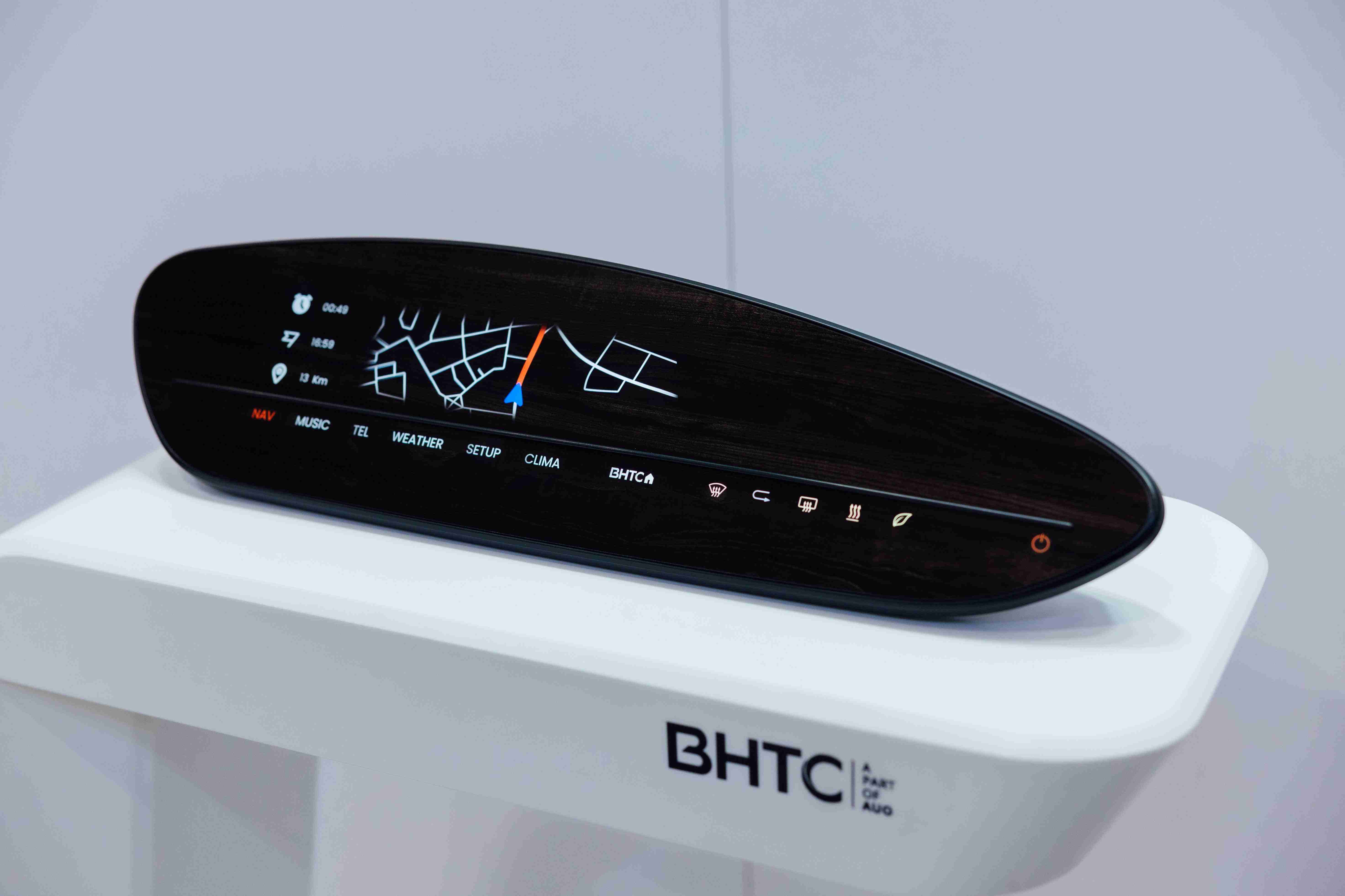 BHTC的木纹车用显示器(Display Behind Wood)将无缝木质表面与显示器结合后,,,可以融入车内设计中,,提供驾驶优质的视觉效果,,加上其无边框的设计和亮度调控,,,创造更优质的车内体验。。。。