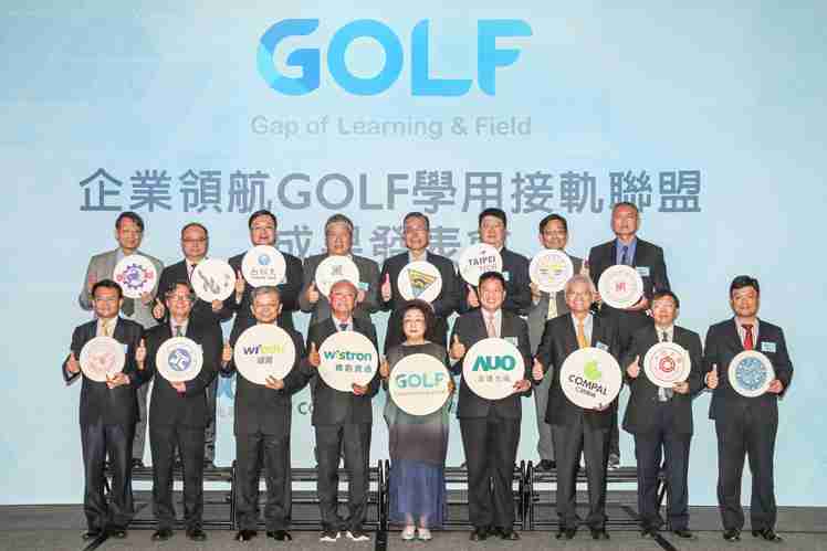 GOLF学用接轨联盟集结企业和学校的力量,,打造「学用合一、、、产学接轨」的创新合作平台 (前排左起:淡江大学副校长何启东、、元智大学校长林启瑞、、、、纬育执行长许延岳、、纬创总经理暨执行长黄柏漙、、、、教育部政务次长范巽绿、、PA直营董事长暨执行长彭双浪、、仁宝总经理暨执行长翁宗斌、、大同大学校长何明果、、、、圣约翰科大校长艾和昌;后排左起:明新科大校长林启瑞、、龙华科大校长葛自祥、、、台湾科大校长廖庆荣、、、中兴大学副校长郑政峯、、、中央大学校长周景扬、、、台北科大副校长任贻均、、、、中华科大副校长石大明、、、、明志科大校长刘祖华)