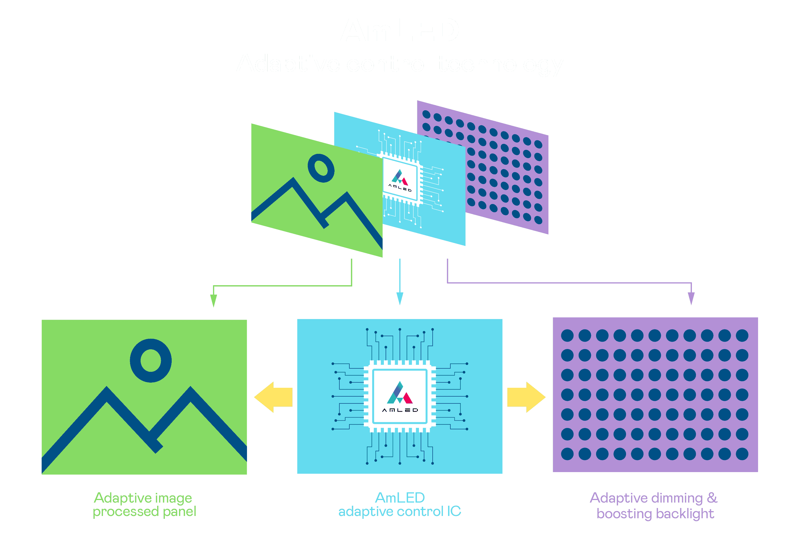 AmLED 具备更省电与低蓝光特性。。。与一般的 LED 背光显示技术相比,,,由于 AmLED 常时处于局部调光状态,,,,其功耗仅有前者的 50% 左右,,同时 AmLED 还具备低蓝光特性,,,,满足长时间使用的护眼需求。。