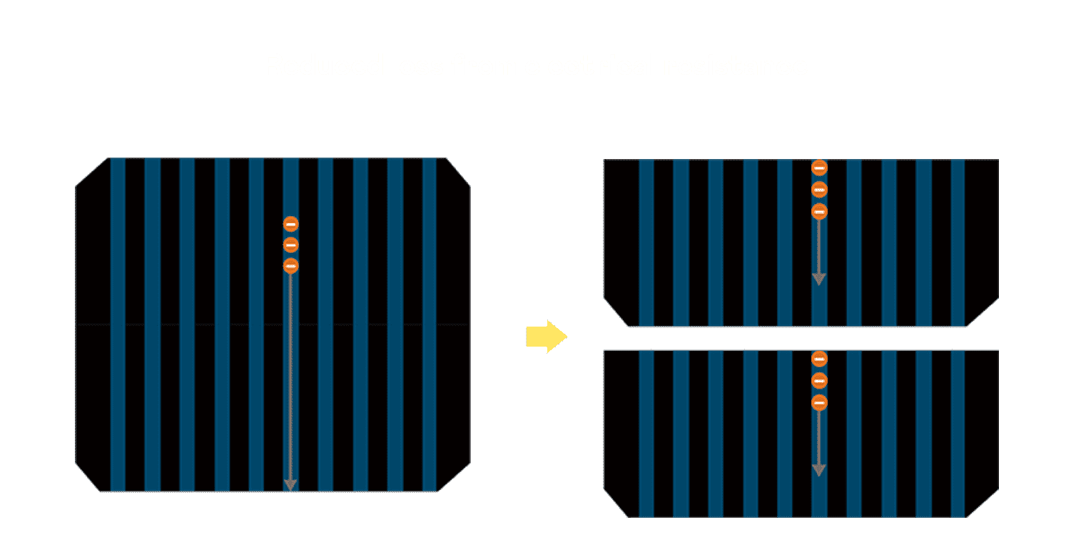 - 多条电极栅结构,,,,可有效降低外力对于电池的影响,,,限制电池隐裂 (Micro-cracks) 范围,,,防止电流传输路径 (Current distribution) 之损坏进一步扩大。。